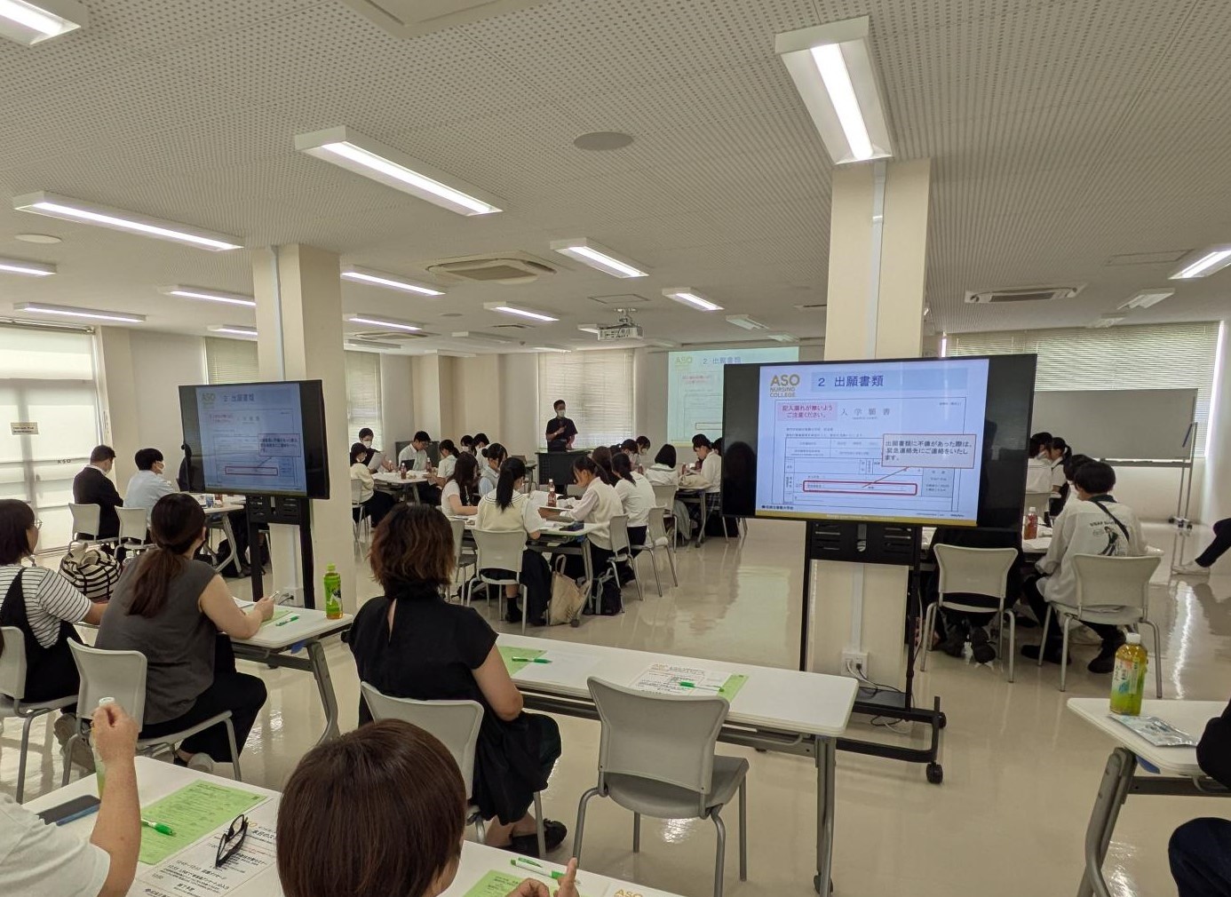 個別説明形式で学校・入試・学費などについて1時間程度で聞くことができます。希望者には校舎見学も実施しています。